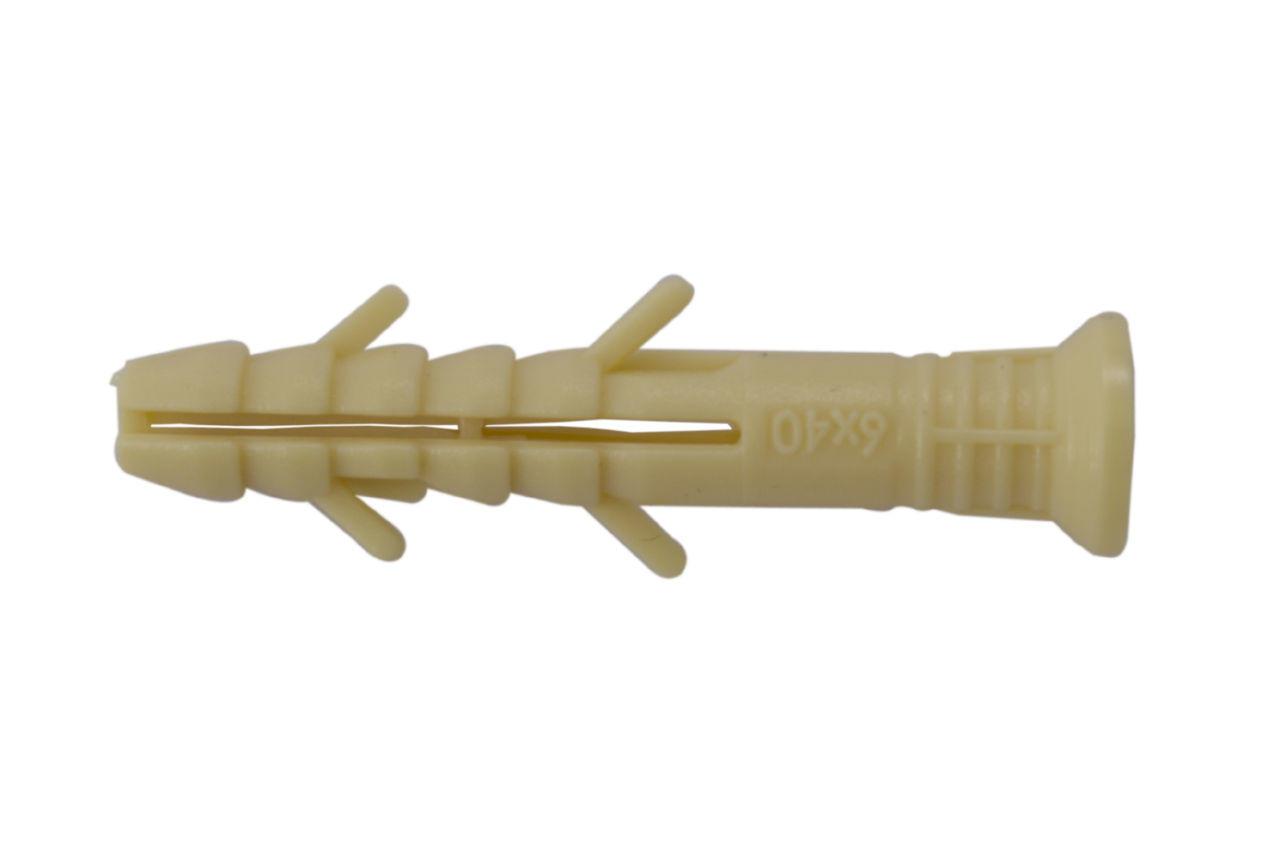 Дюбель має діаметр 6 мм і довжину 40 мм, що дозволяє йому міцно утримувати кріпильні елементи, забезпечуючи надійність і стійкість конструкції. Потайний вид бортика забезпечує акуратне і непомітне кріплення, що особливо важливо при монтажі вікон, дверей та інших декоративних елементів, де важлива естетика і рівна поверхня.